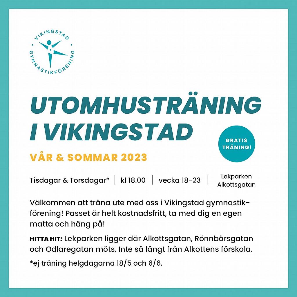 Passa på att träna ute med oss nu när våren är här! Tisdag den 2 maj drar utomhusträningen igång. Tisdagar och torsdagar under vecka 18-23 (ej helgdagar), kl 18.00 vid lekparken på Alkottsgatan. Anna, Jenny och Clara kommer turas om att leda träningen.
